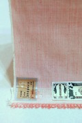 無地織と記してますが、実際の表情は「無地」と言ってしまうには申し訳ないほどの質感、いわゆるモヤ感(靄感)があります。 真綿糸特有の表情なのですが、霞がかかったような桜色はモヤ感が殊の外美しく見えます。 水彩画などの「色のかすれ」のように美しいのです。 色にもひとそれぞれ好みが有ることを承知の上で申し上げますが、揺らぎにもみえる靄感、この透き通るような「桜色/桃色」は私たち日本人の琴線に触れる何か、があるように思います。