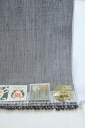本品は高機(手織り)で織られた本場結城紬です。 まず真っ先に書き留めたいと思いましたのはこのお色目。 地色は青みを感じるグレー。 淡くはなく、濃くもない地色は春、秋、冬、3シーズンお使いいただきやすいお色目です。 グレーの中に微かに目に映る青み…。 よく見掛けるグレーとは受ける印象がまったく違う。 グレーはやや赤みを含むとチャコールグレーだけど、青みを含むこちらは何と言うのだろう、単純に言えばブルーグレーだか、それとはちょっとニュアンスが異なる。 もちろんその印象は偶然ではなく意図して創られている。 紡がれたその糸の密度がそれぞれに微妙に異なることに加え、黒に近い青玉、深い深い瑠璃色の微かに違いを持たせた糸がそれぞれに異なった深みを保って染まっている。 偶々出来るものではない。