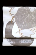 加えて目を引くのは余白の美、あえて余計な虚飾を描き足さない(織りたさない)余計な色も加えない、眺めていても飽きることがないのです。 如何にも、な不要な圧を想わせない、けれどもやはりどこか違う、そんな古典的な美しさを保っています。 たとえ彩色が雅やかでなくても、金糸銀糸が多用されてなくても、唐織のように織感が盛り上がっていなくても、目に映る以上の質感、思う以上の品位を想わせてくれます。 そしてこちらもまた現代の数寄者/愛好家が求めたもの、それをこうしてこの織匠が織り上げたのです。 礼装の色無地、略礼装の附下や江戸小紋に適わせてもとても素敵ですが、無地織や小絣の結城などの紬にも素敵です。 現品限りです。