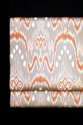 私の勝手な思い込みかもしれませんが、かつて北村武資氏は太子間道に向かいとても手間の掛かる仕事を積み重ね、それらを超えようとしたのかもしれません。 眺めていると文様に使われたひとつ一つの色が、直接的に目に映るのではなく、地色や周りの他の色と相乗して本来そのものが保つ「色」以上の「色」、もっと言えば「文様」以上の「文様」となっているのです。 太子間道は帯の意匠としてはとりわけ珍しいものではありません。しかし、その構図に籠められた色の創造と文様美がこの帯の美しさを際立たせているのだと思います。